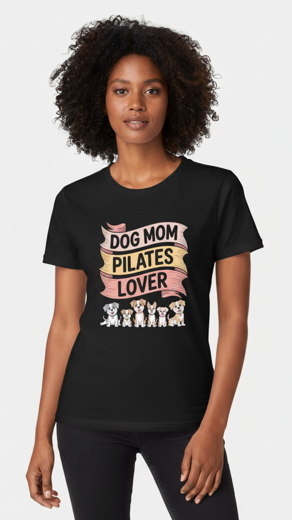 "Dog Mom Pilates Lover" Whimsical Puppy T-shirt