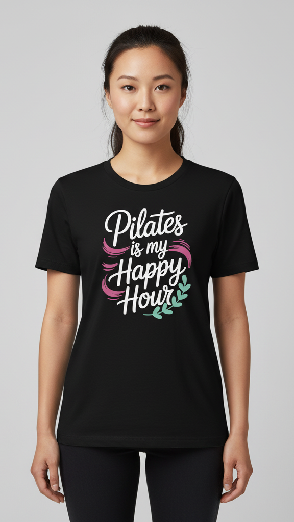"Pilates Is My Happy Hour" Whimsical Brushstroke T-shirt
